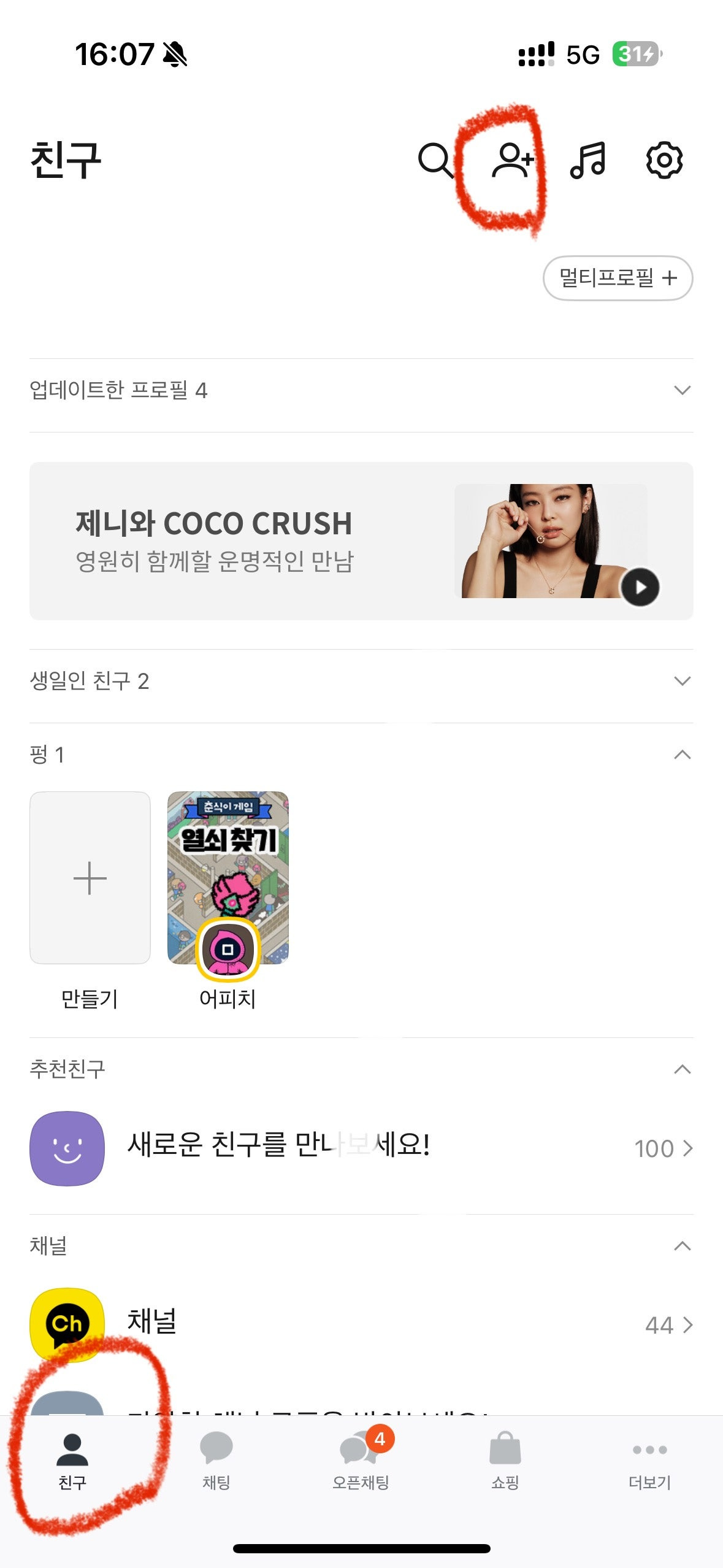 왼쪽 아래 친구 누르고