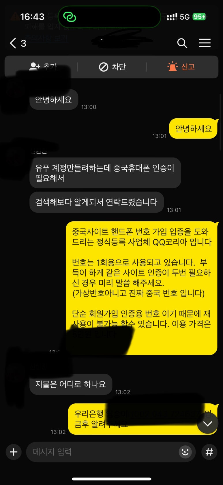 저희 쪽에서 사이트 확인후 알맞은 중국번호를 보내드려요
